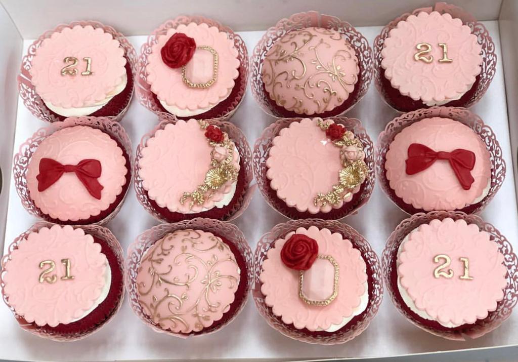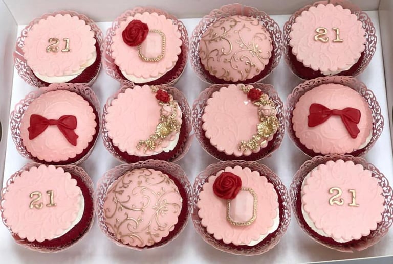 Savor the luxurious taste of our Golden Velvet Cupcake Collection. Featuring a rich red velvet base, each cupcake is adorned with a delicate fondant decoration and finished with golden hand-stenciled patterns and ribbons. Perfect for any occasion, this decadent treat will elevate your celebration with a touch of elegance and sophistication. Each box comes with 12 beautifully crafted cupcakes, ready to be shared and enjoyed with your loved ones. Whether you're celebrating a milestone, special event, or simply indulging in a sweet treat, our Golden Velvet Cupcake Collection is the perfect choice for those who appreciate the finer things in life.