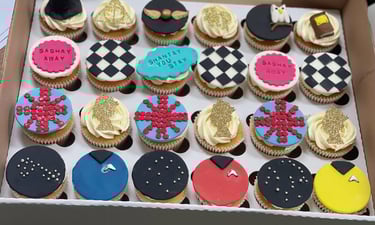 Our Cupcake Mosaic box contains 24 delicious and uniquely designed cupcakes, each carefully crafted with fondant to create a mosaic of color and design. With an array of different designs and colors, these cupcakes are perfect for any occasion, from birthdays to weddings to corporate events. Indulge in a sweet and artistic treat that's sure to impress!