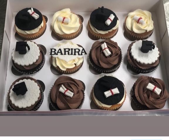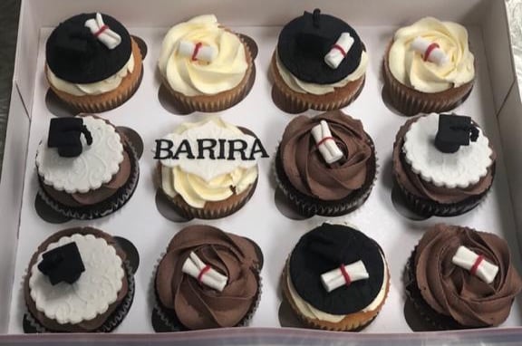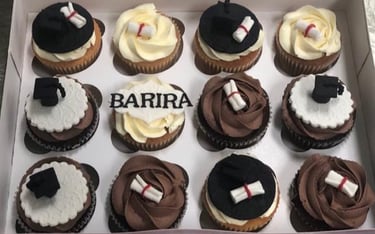 Celebrate your graduation in style with our Graduation Celebration Cupcake Box! This box of 12 delicious chocolate buttercream cupcakes is topped with fondant graduation hats in classic graduation colors of brown, cream, and black. These cupcakes are the perfect way to celebrate your graduation day with friends and family.
