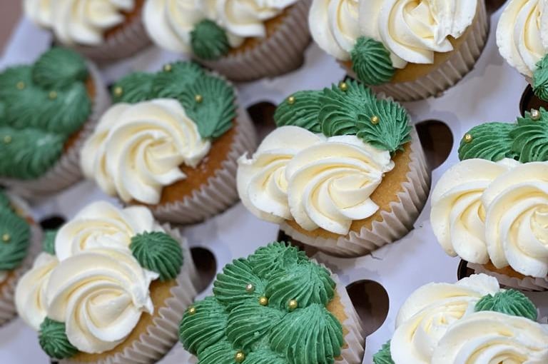 Celebrate Eid with our delectable Eid Swirls Cupcake Box, featuring 24 moist buttercream cupcakes with a delightful green and white swirly rose design, topped with shimmering gold and silver balls. These cupcakes are perfect for sharing with family and friends during the festive season.